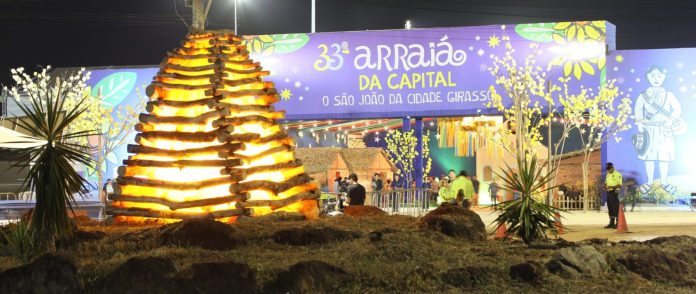 A 33ª edição do Arraiá da Capital está repleta de cores, formas e símbolos que resgatam as tradições do São João; mas também com um toque regional e acolhedor. Logo na entrada, o público é recepcionado com um cenário de vilarejo, com capelinha e casinhas que imitam a arquitetura de pau-a-pique. O telhado decorado com palha reforça o ambiente rústico, junto com girassóis, ipês brancos, amarelos e roxos espalhados por todo o espaço.